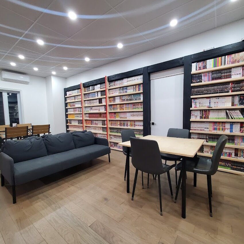 Superbe belle découverte. 3 salles, une salle de lecture avec des bibliothèques remplies de manga. Une salle avec tables pour jouer aux jeux de société & la salle à manger.